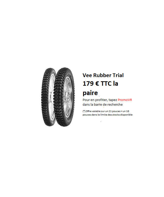 Le pneu Vee Rubber bénéficie de technologies de fabrication modernes et d'un design classique trial.